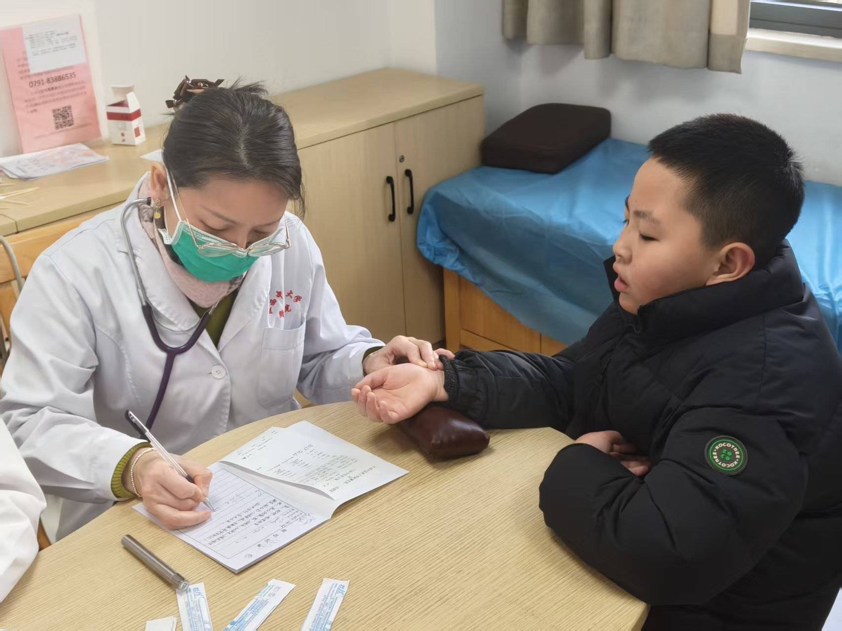 江西中医药大学临床医学院副院长、附属医院儿科负责人刘英(左)正在接诊。受访者供图眼下,不少家长带着“敏娃”到中医院,调理体质。江西中医药大学临床医学院副院长、附属医院儿科负责人刘英的门诊里,针对气虚质、阴虚质、痰湿质、内热质的孩子,一人一方,调理各有讲究。